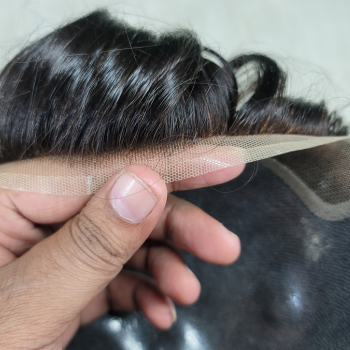 100% perruque de cheveux indiens Remy attachés à la main pour hommes Bio-Lace PU Base toupet avec nœuds blanchis corps/eau vague Styles Texture droite