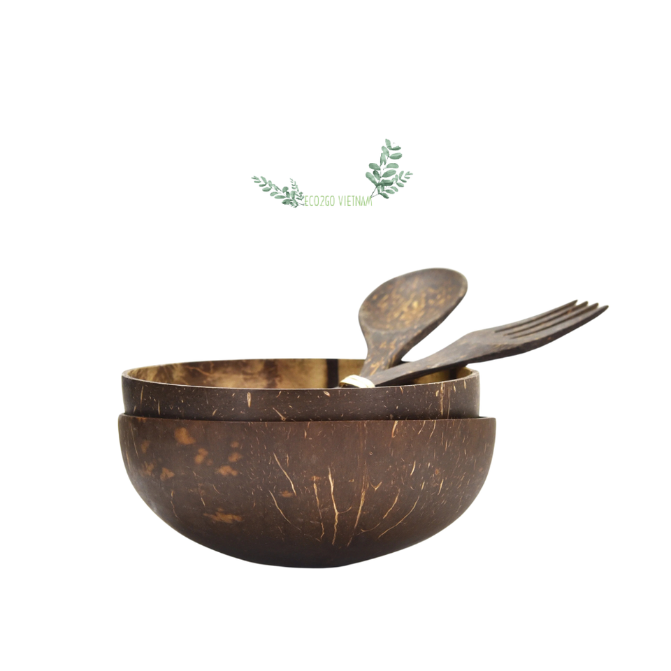 100% Handicraft Natural Coconut Shell Bowl and Small Vietnam Spoon Set Eco-Friendly High Quality Handmade in Vietnam