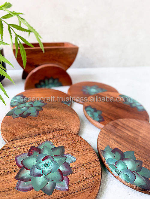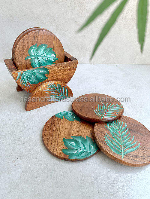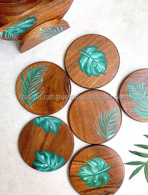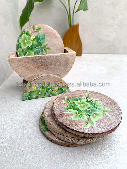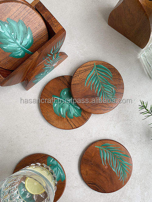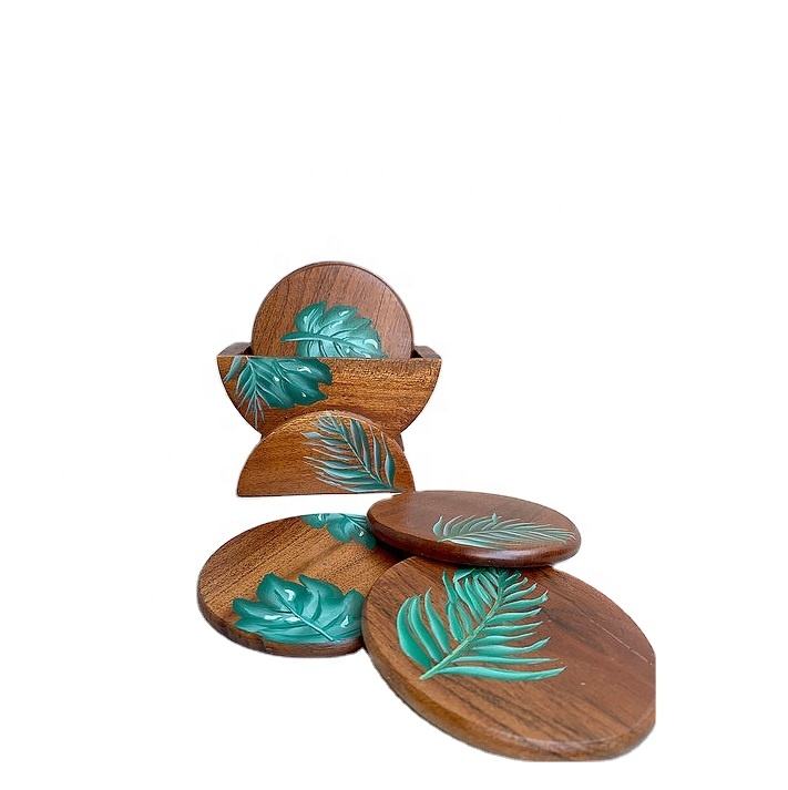 Dessous de verre en bois imprimé à la main 100%, thé café, revêtement en bois naturel, produit en bois, dessous de verre pour la maison, l'hôtel et le Restaurant