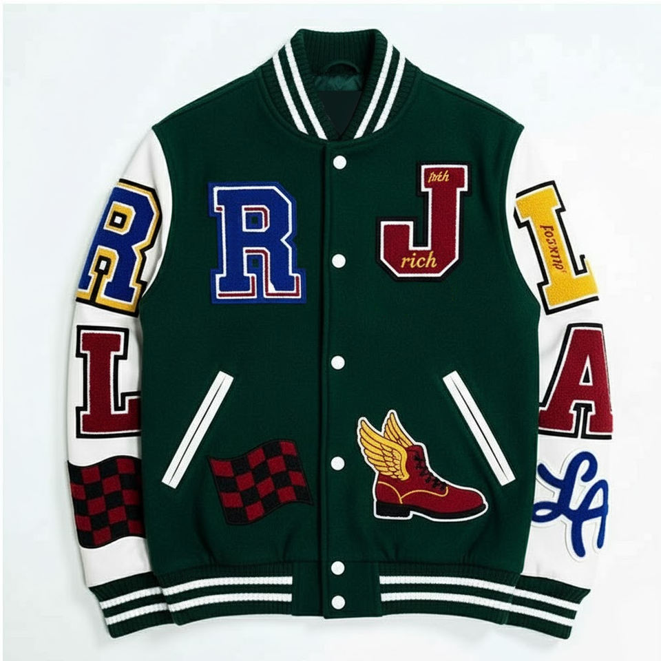 Veste universitaire brodée en chenille pour hommes
