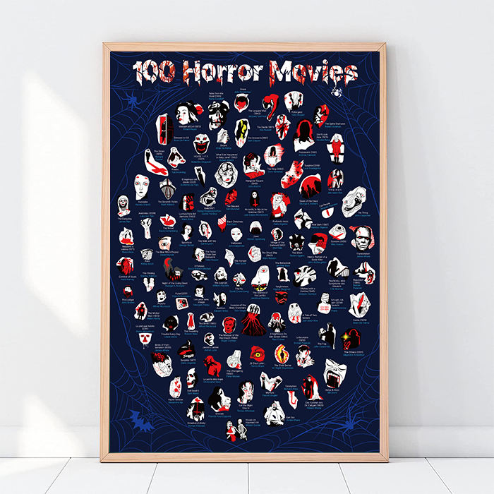 100 horror movies scratch off poster