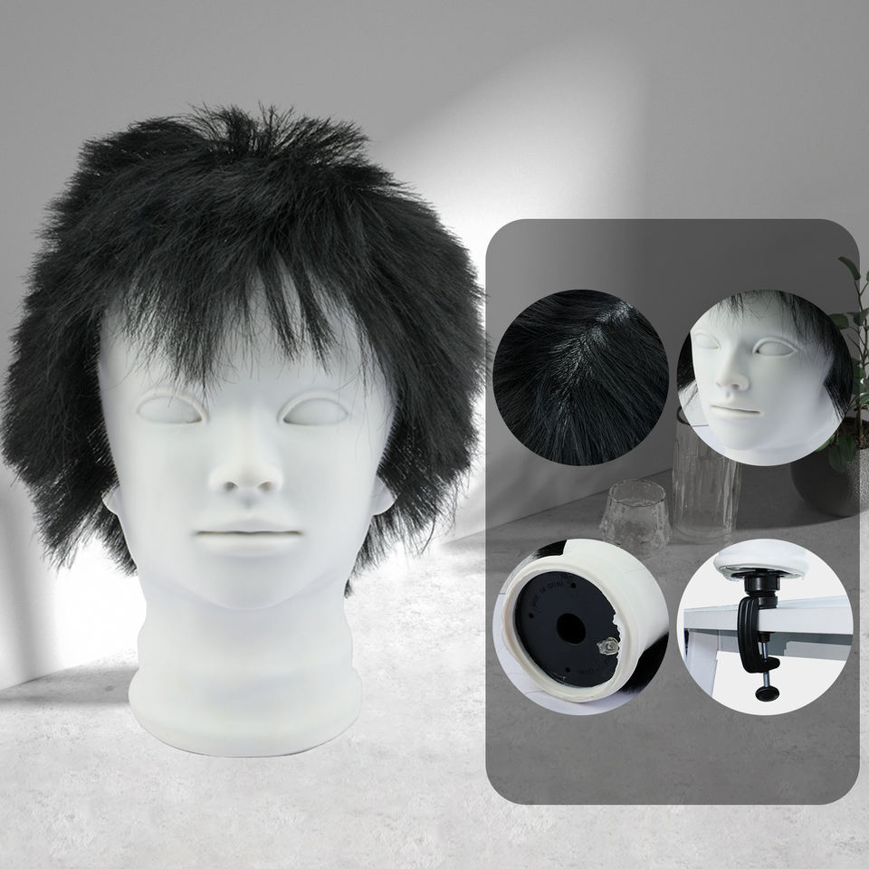 Tête de mannequin d'entraînement pour barbier en cheveux humains à 100%, multifonctionnelle, 24 cm, tête d'entraînement pour hommes avec support