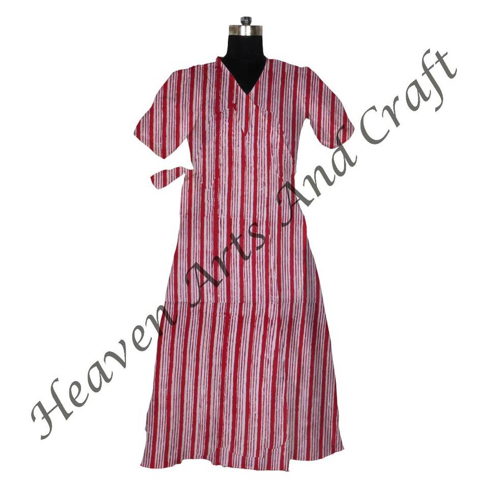 100% Indian Cotton Kimono Dress Handmade Block Print Women Night Wear Long Sleeve Gown