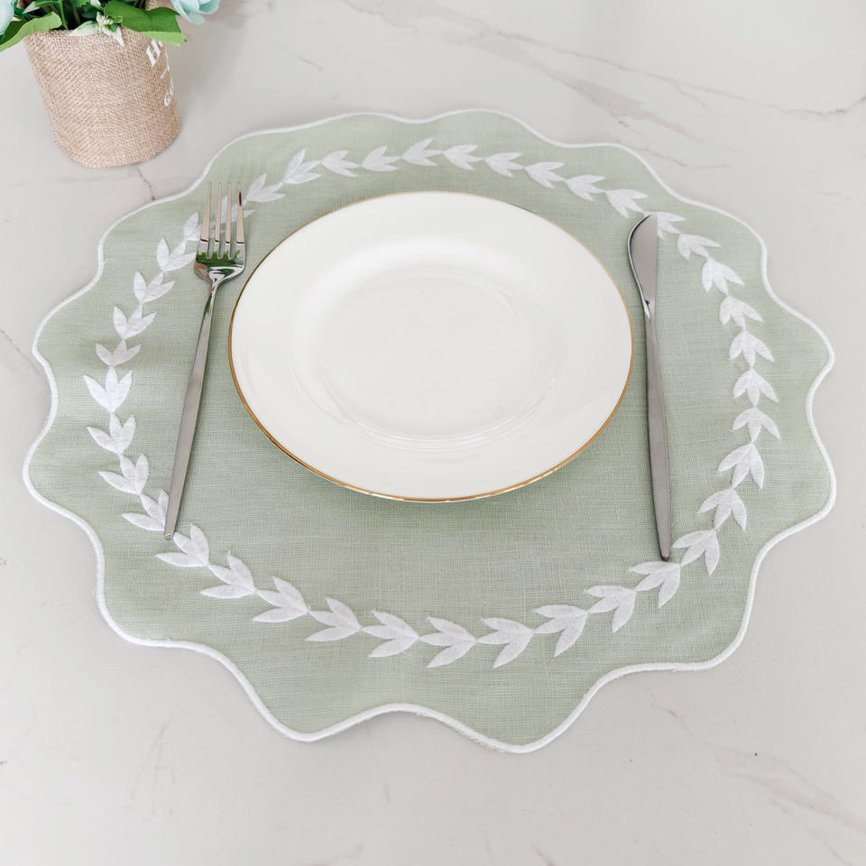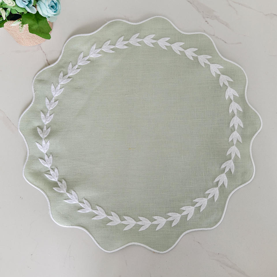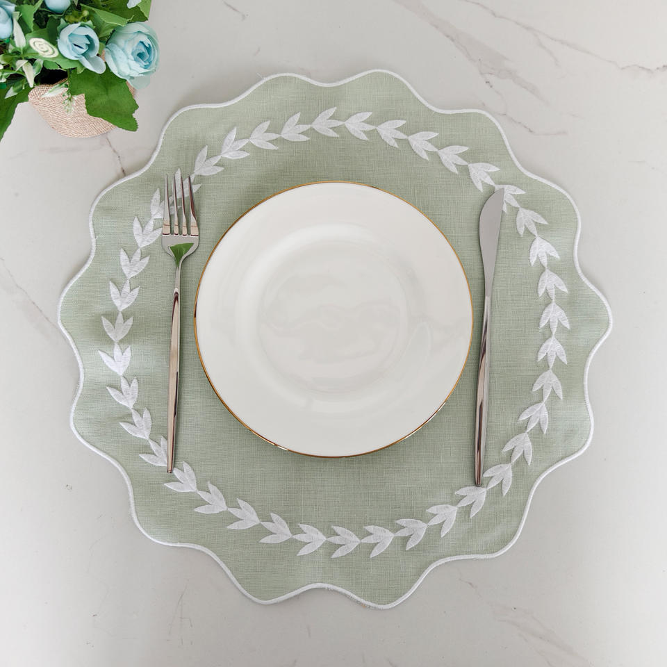 100% lin fait à la main pétoncle brodé rond napperon serviettes en tissu réutilisables pour la maison hôtel fête mariage à la menthe