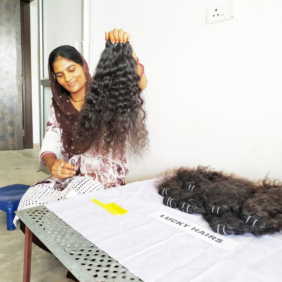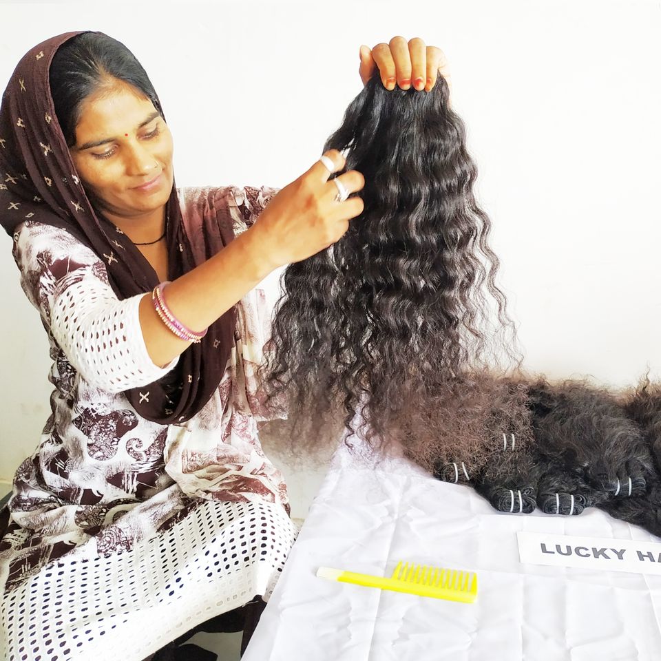 100% faisceaux naturels de vague profonde en vrac cuticule vierge crue alignée Machine Double trame noir bouclé Extensions de cheveux humains vietnamiens
