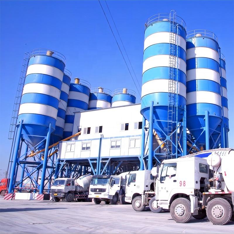 Ligne de production de centrale à béton fixe électrique de 100 m³/h avec 6 trémies, moteur et engin, prix compétitifs