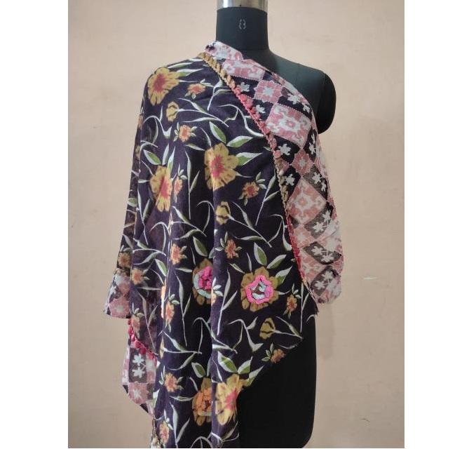 Nom du produit:Écharpe 100% laine mérinos, imprimée à la main avec broderie.