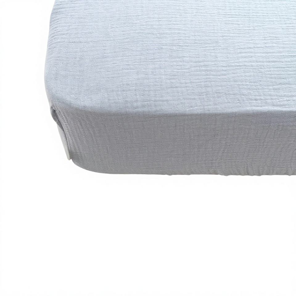 Draps de berceau 100 % coton mousseline, standard, faciles d'entretien, respirants, antibactériens, 50 fils, doux, tricotés, bleu clair, certifiés GOTS