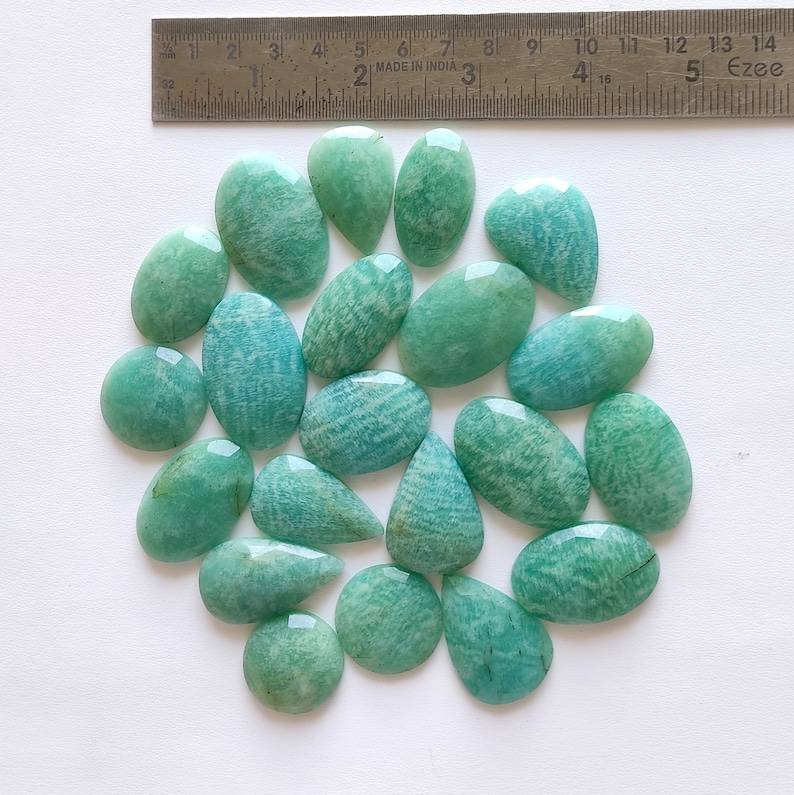 100% Naturel Amazonite Mélange Forme Lisse Dos Plat Lâche Véritable Cabochon Calibré Pierres Précieuses à Prix D'usine En Gros En Vrac