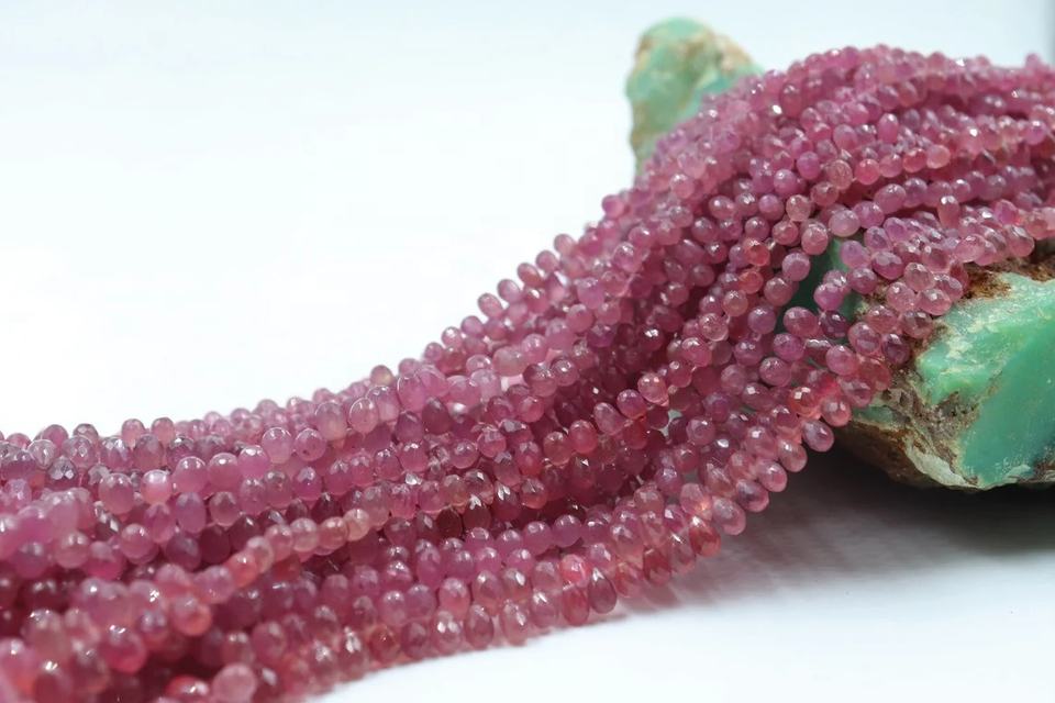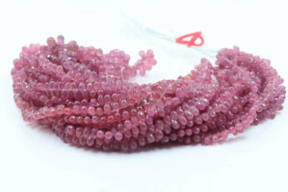100% perles en forme de goutte à facettes rubis naturel 4mm perles de rubis coupées sur le côté pour la fabrication de bijoux arrivée perles de rubis naturel pour bijoux