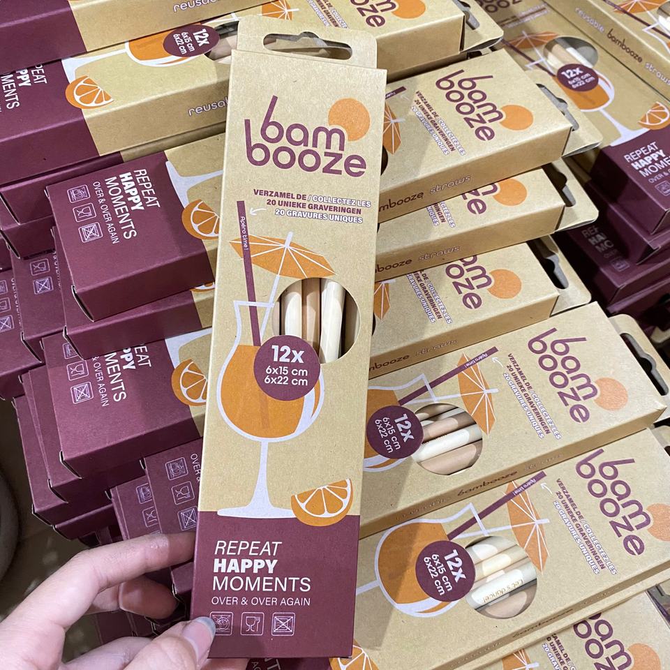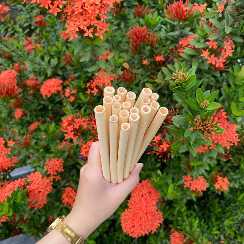 100% ensemble de pailles en bambou naturel avec logo laser fournitures de fête écologiques biodégradables par Eco2go Vietnam