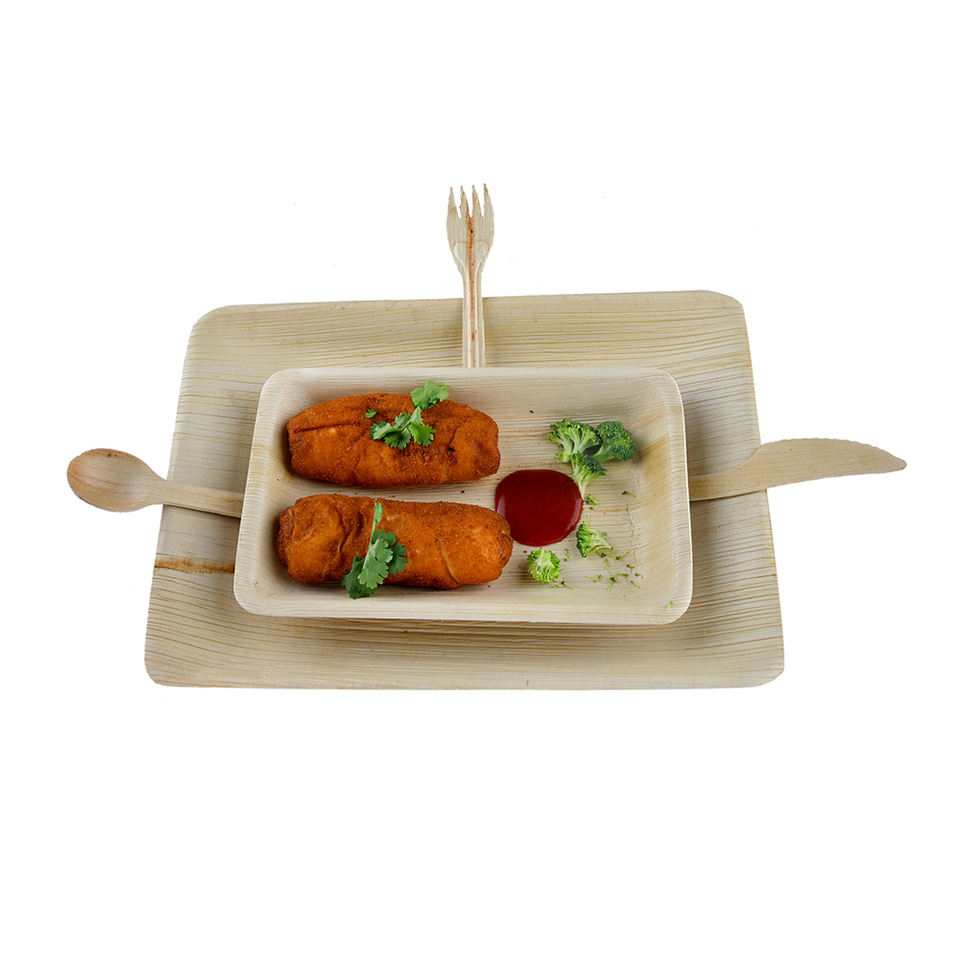 100% naturel biodégradable feuille de palmier jetable dîner plat Rectangle assiettes de service événements de mariage et plateaux de service alimentaire