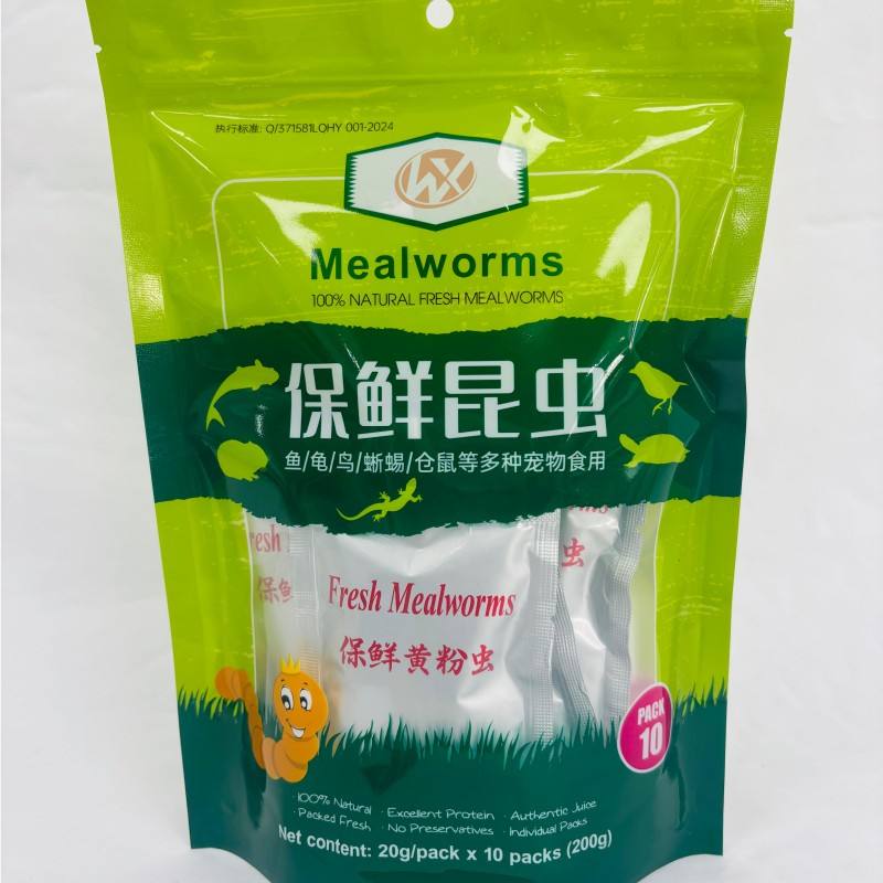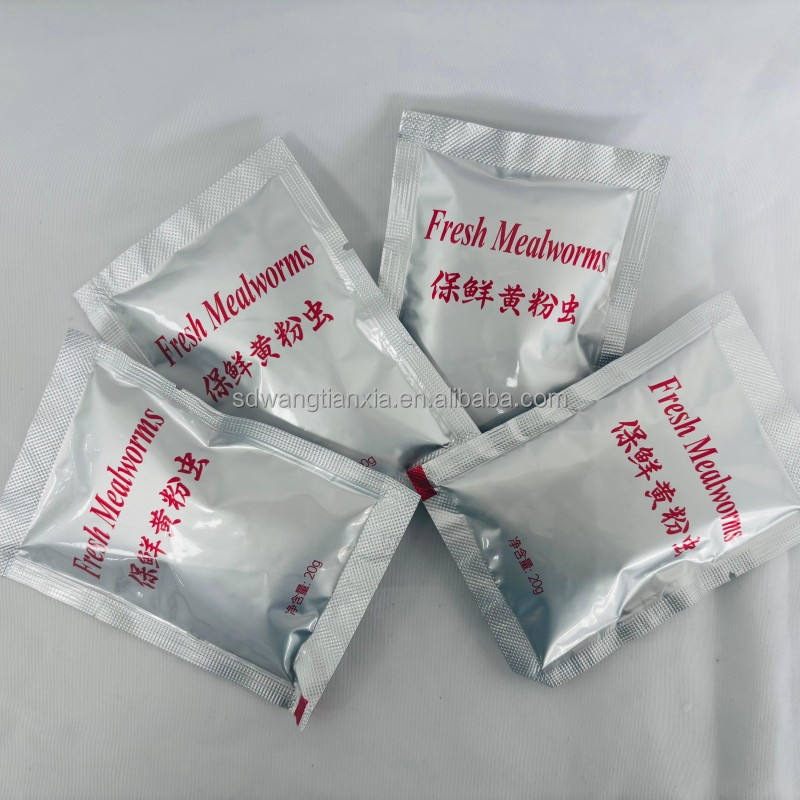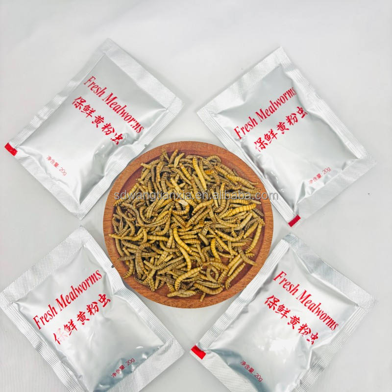 Vers de farine frais 100% naturels en vrac, emballage en sac aluminium, alimentation pour oiseaux et volailles