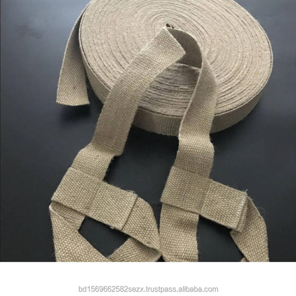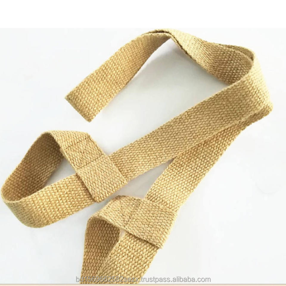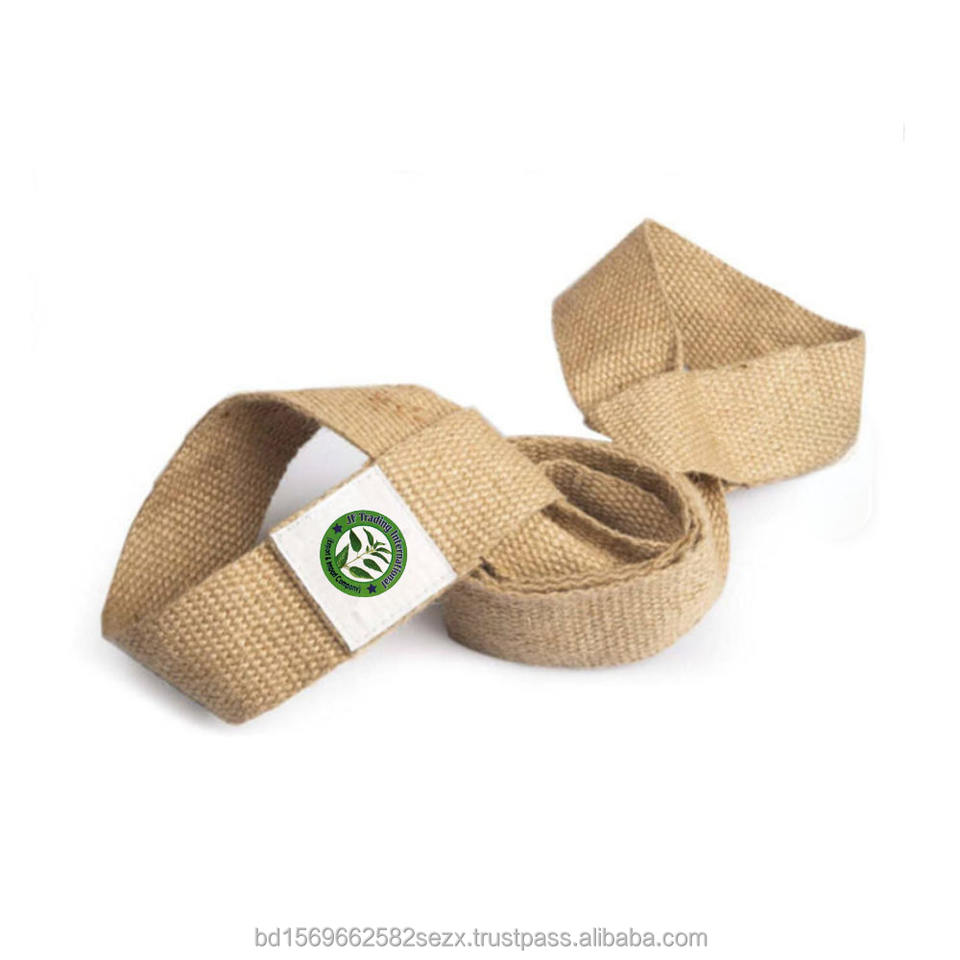100% Natural Eco-Friendly Jute Yoga Strap 183 X 3.8 cm Moisture-Absorbent Anti-Bacteria Custom Logo Raw Pattern Color JF Jute