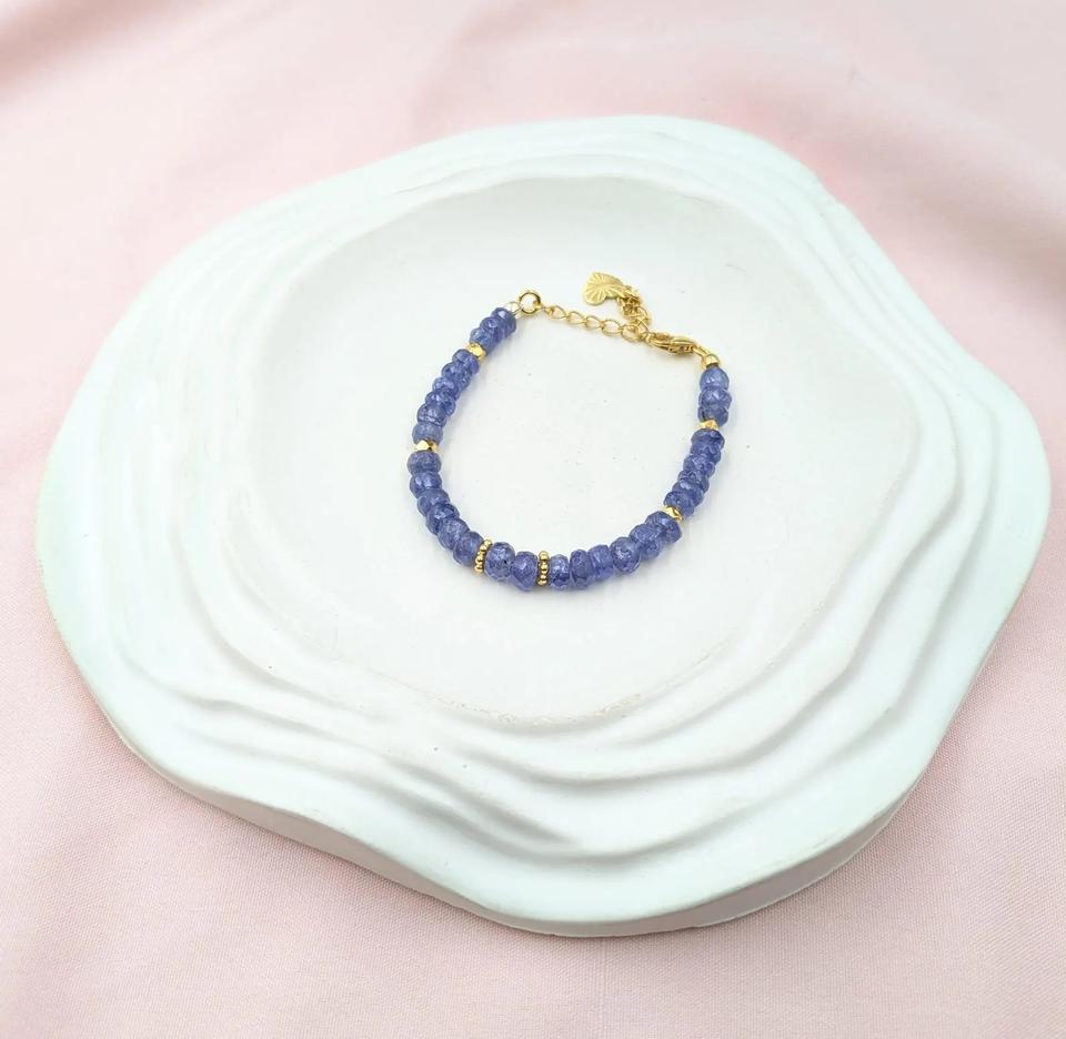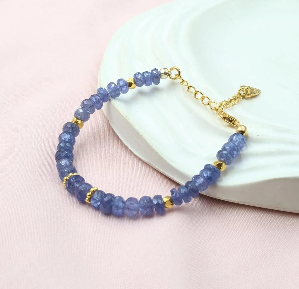 Bracelet de perles de rondelle à facettes naturelles 100% Bracelet en argent sterling 925 Tanzanite cadeau d'anniversaire parfait Bracelets de perles fines