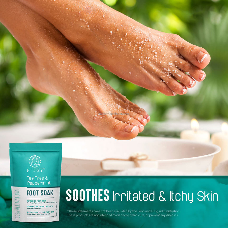 100% sel de pied naturel menthe poivrée arbre à thé lavande huile sel pied tremper athlètes brûlant démangeaisons odeur tenace adoucit le sel de pied