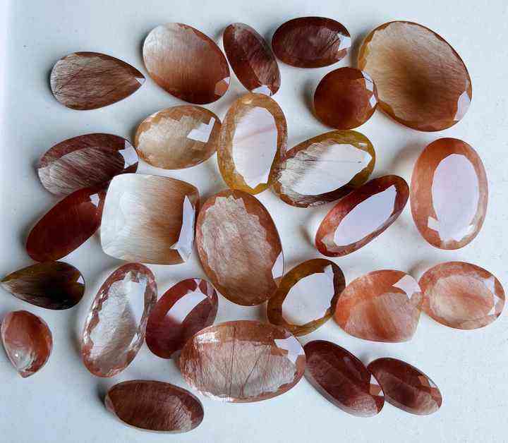 Quartz Rutile Doré 100% Naturel Cabochon Facetté Pierre Précieuse en Vrac 100 Pièces Certifié par un Tiers Fabrication de Bijoux Effets Lumineux