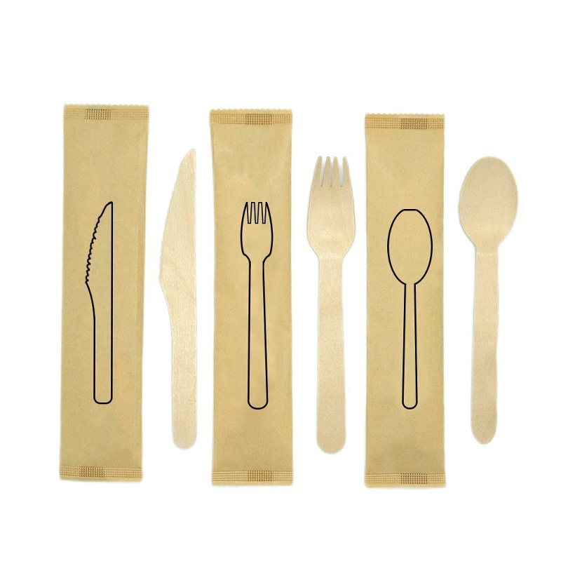 Vaisselle biodégradable sur mesure, couverts en bois, cuillères fourchettes, couteaux, ensemble de serviettes