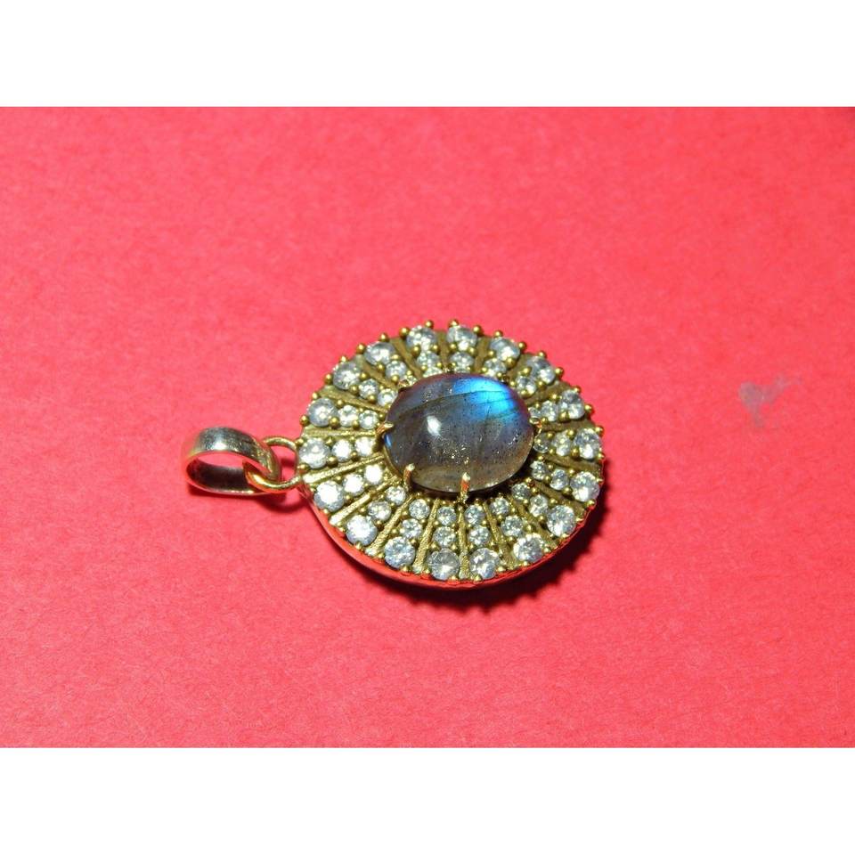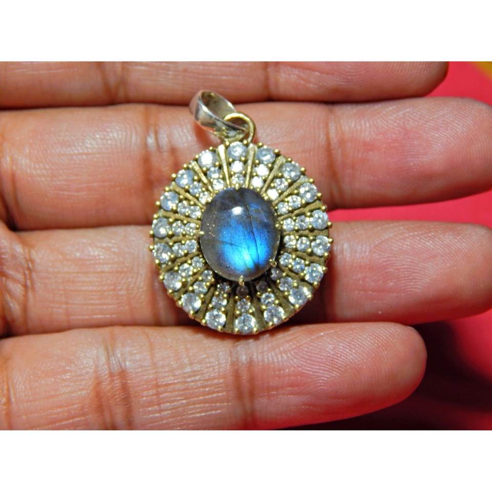 Pendentif artisanal en argent sterling 925 avec zircone et labradorite 100% naturelle pour femmes, bijoux de soirée raffinés avec un design Wanderlust