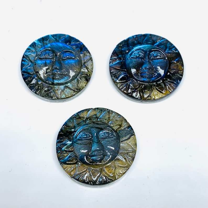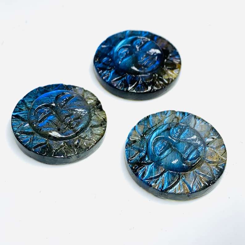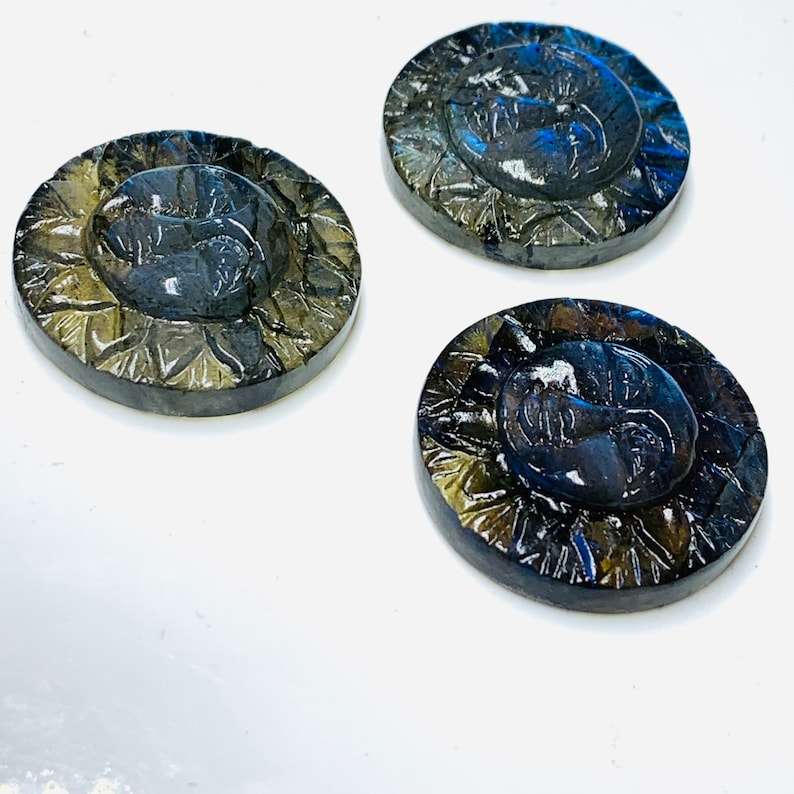 Pierre précieuse sculptée en forme de visage en labradorite 100% naturelle avec effet étoilé - Pierre précieuse noire sculptée en forme de visage de 25 mm pour bijoux