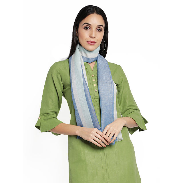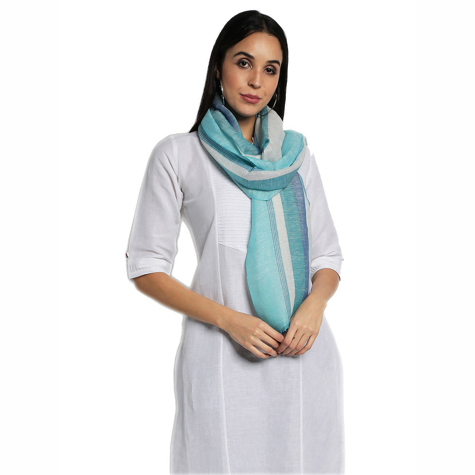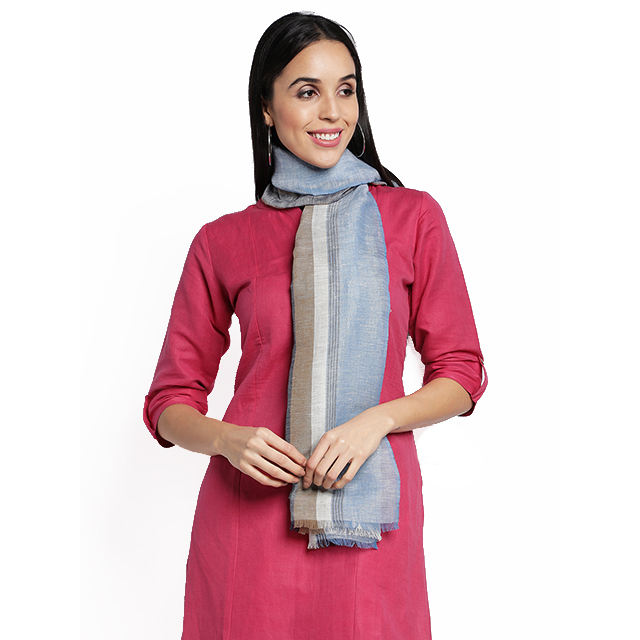 Linen Striped Printed Scarfs For Women Latest Natural Linen