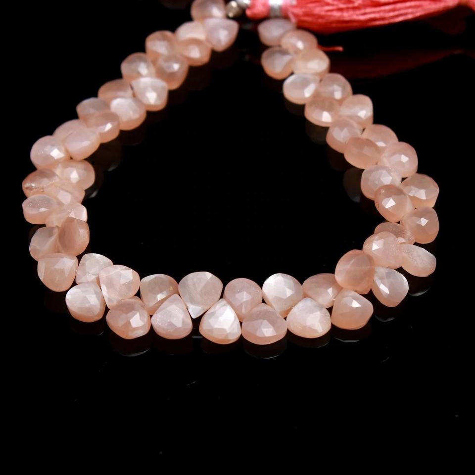 Name:Peach Moonstone Faceted Heart Shaped Beads