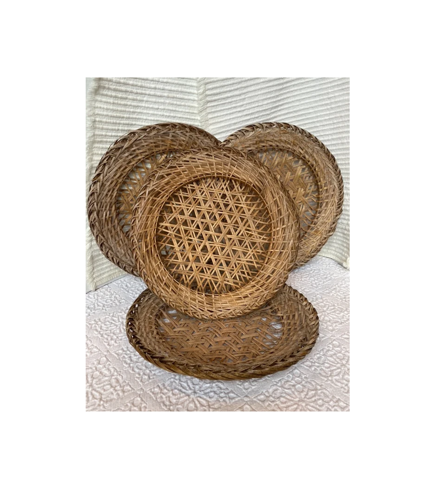 100% assiette de chargeur en rotin naturel conception Unique rotin assiettes de chargeur de forme ronde utilisation de Table de Restaurant d'hôtel de maison de luxe