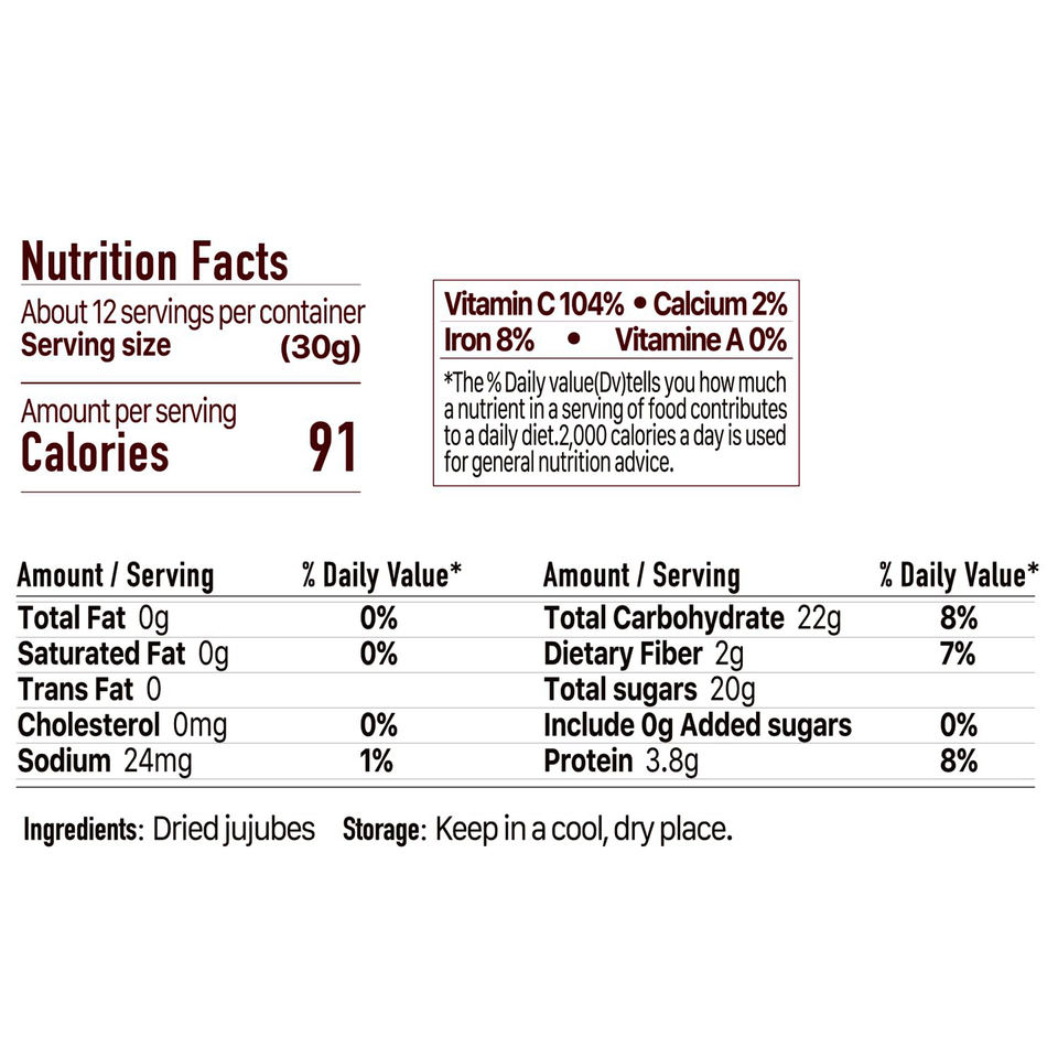 Ingrédient principal:100% Natural Sun-Dried Jujubes