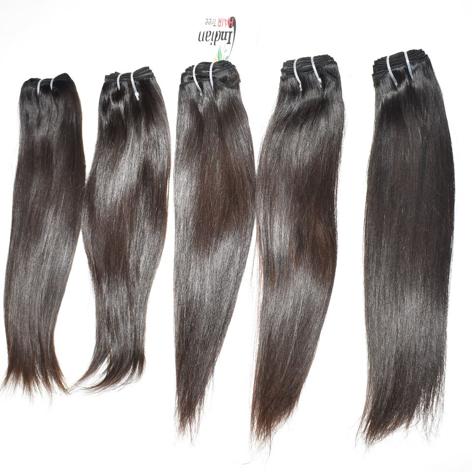 Cheveux humains indiens vierges 100 % naturels, bruts, non traités, à cuticules alignées, noirs, lisses, double trame, avec style de tissage naturel