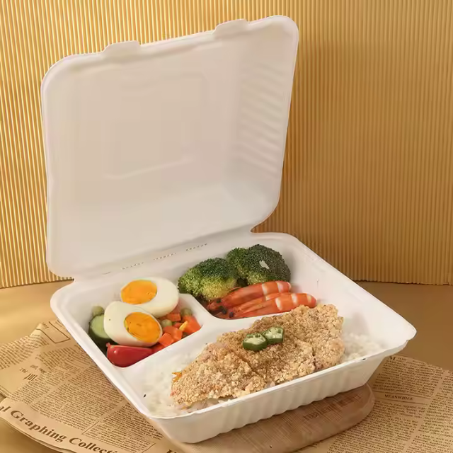 100% nouveau micro-ondes-sûr 9x9 pouces écologique biodégradable jetable vaisselle qualité à base de plantes Top Clamshell