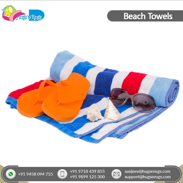 Serviette de plage rayée teintée en fil à haute absorption d'eau OEM 100% de l'Inde fabricant et fournisseur indien haut de gamme