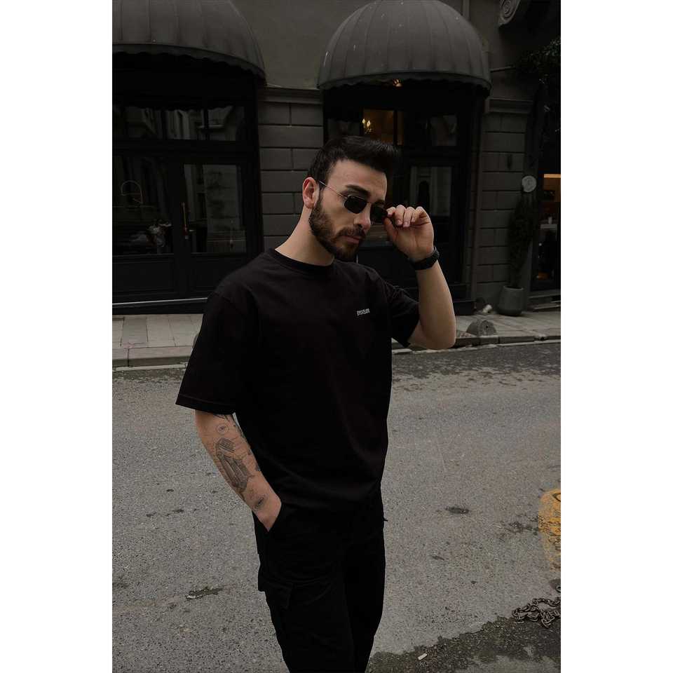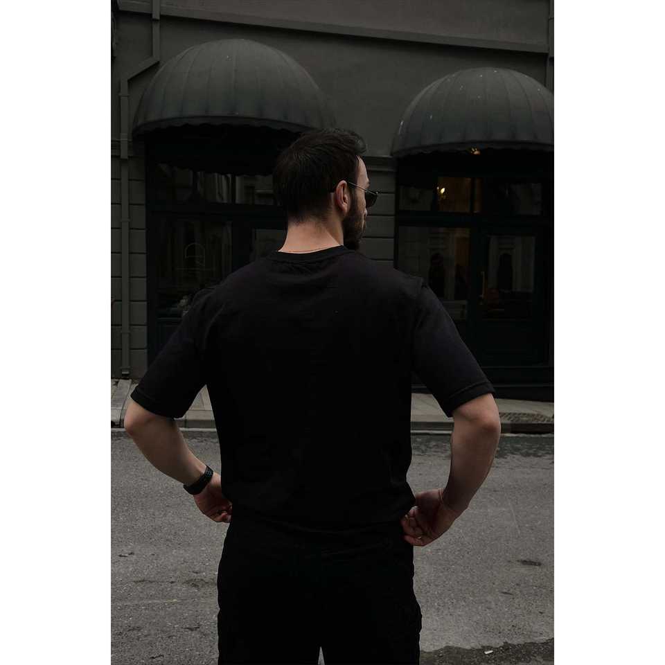 100% Organic Cotton Fitness T-Shirt Black with Front Text 300 Grams Compressed Screen Print Method