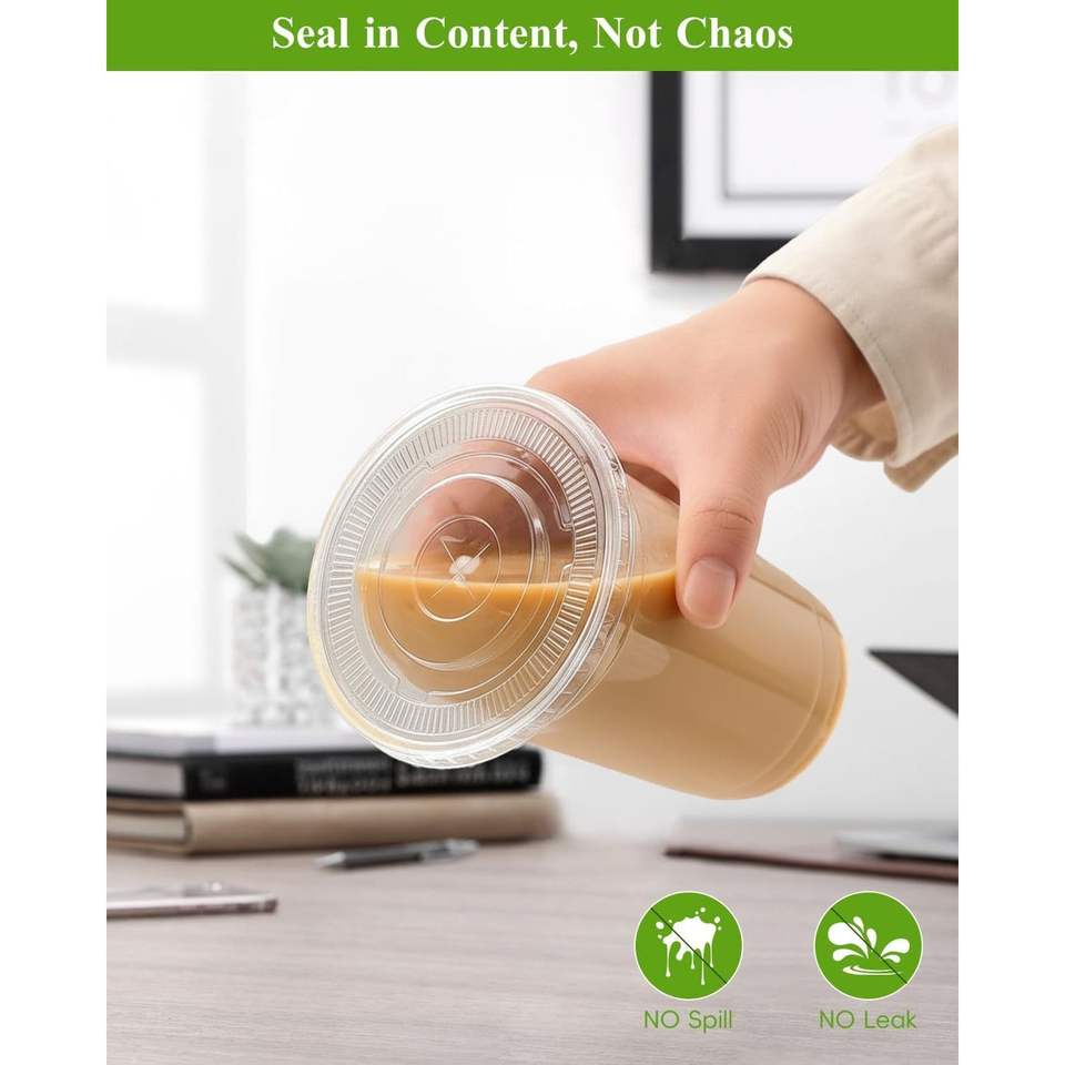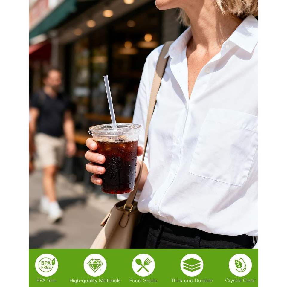 Lot de 100 gobelets jetables transparents de 16 oz avec couvercles et pailles, qualité alimentaire, pour bubble tea, café glacé et boissons froides