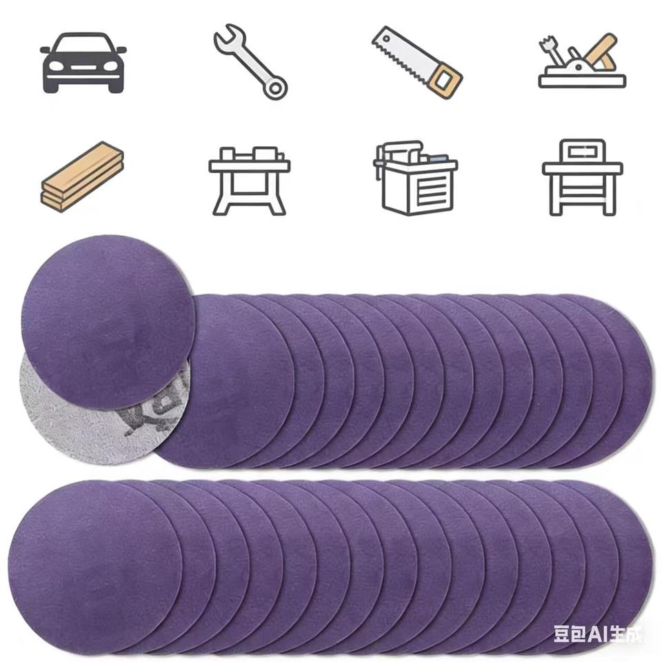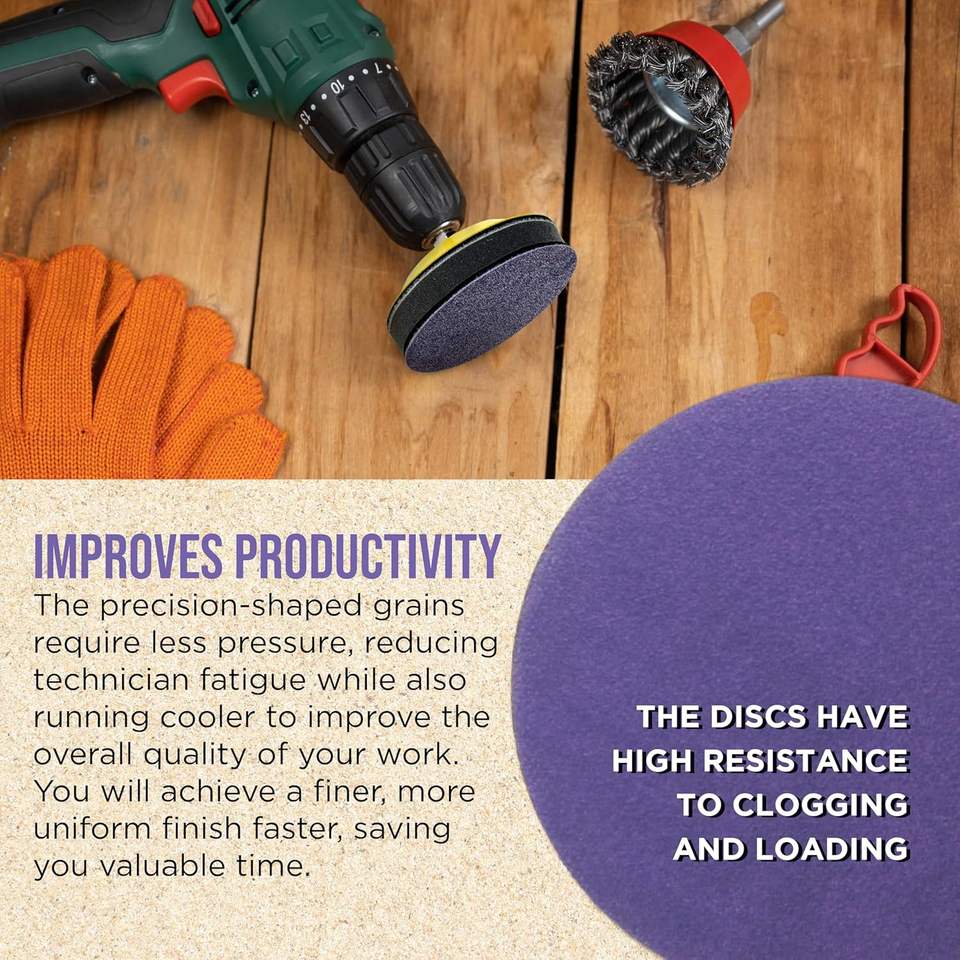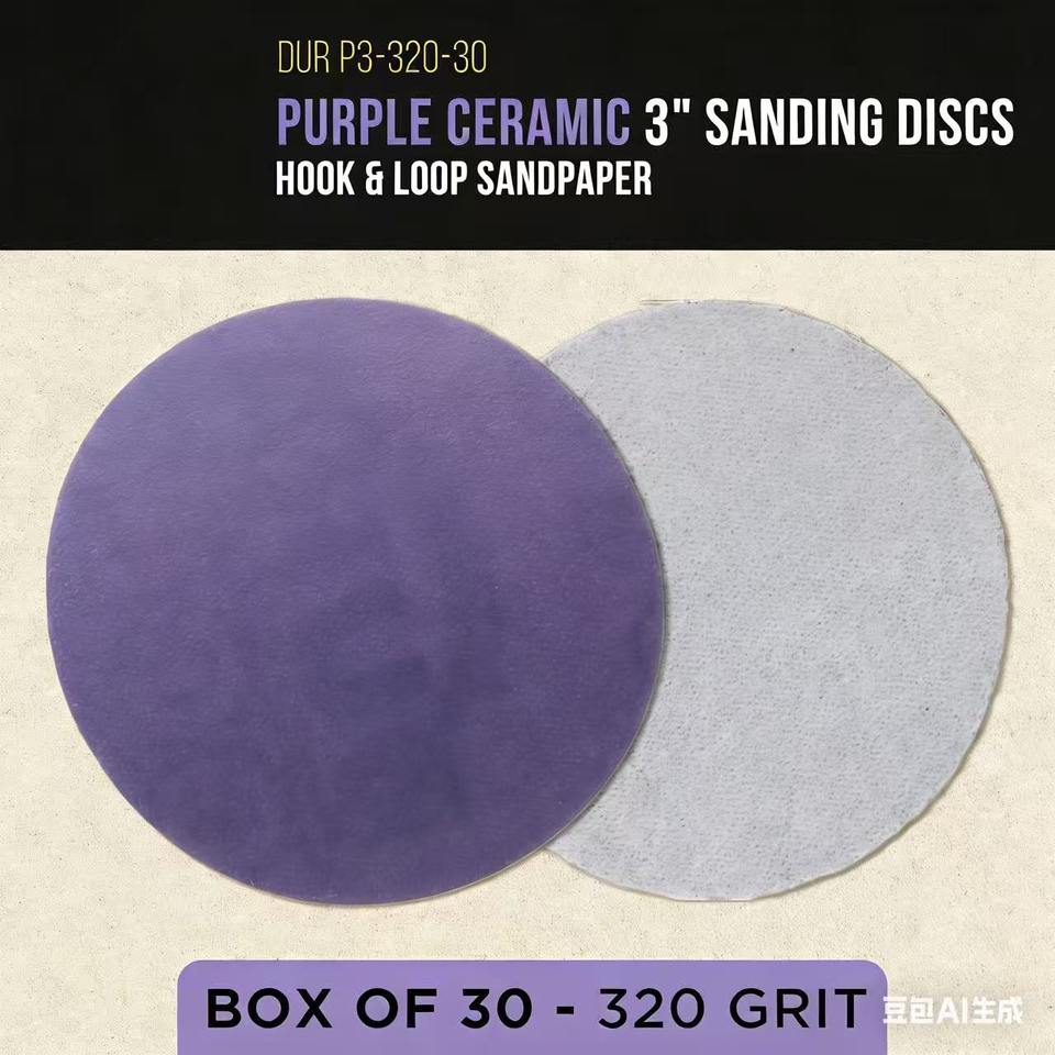 100 disques abrasifs en céramique à film violet de qualité supérieure, grain 320, 3 pouces, avec fixation auto-agrippante, pour ponceuse orbitale, perceuse, meuleuse, outil rotatif - Auto