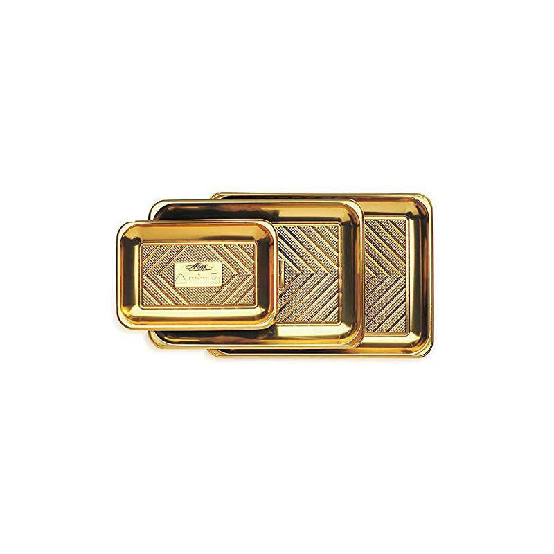 100 Pcs Kadò Plateaux de service en plastique doré n ° 4 Alcas 293x210H22mm Plateau à pâtisserie