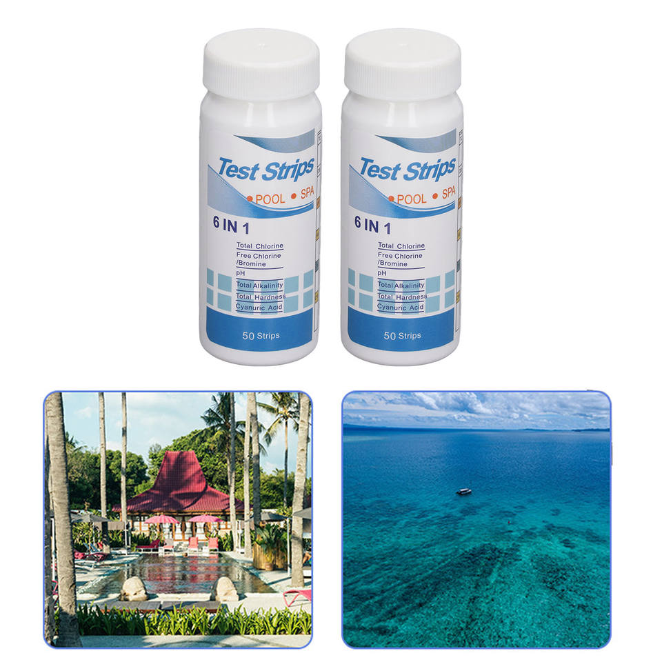 100 bandelettes de test de pH 6 en 1 (pH, chlore, dureté, alcalinité, acide cyanurique) pour piscine et spa