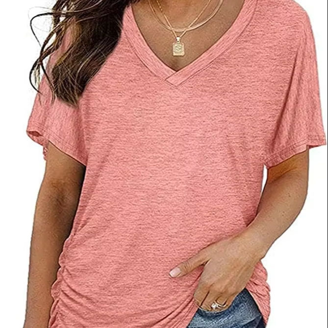 T-shirts pour femmes à col en V, haute qualité, grandes tailles, décontractés, motifs unis, couleurs et tailles personnalisables, tissu respirant anti-boulochage