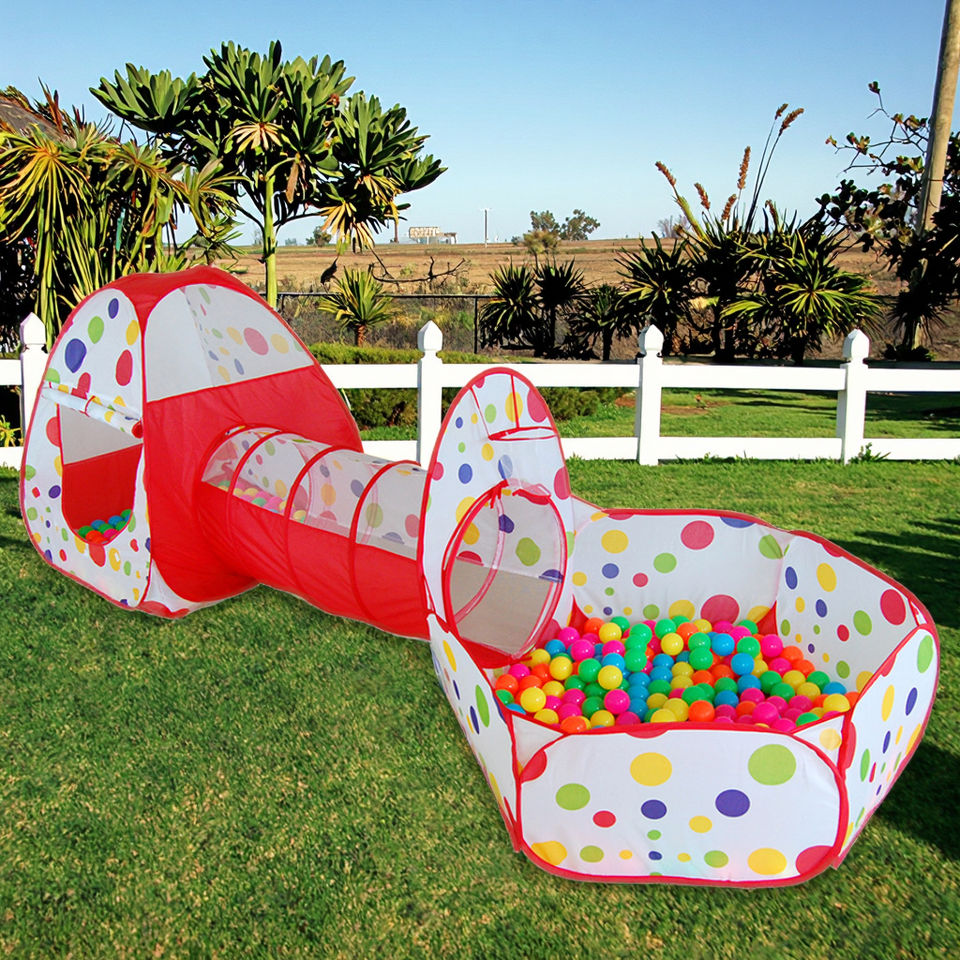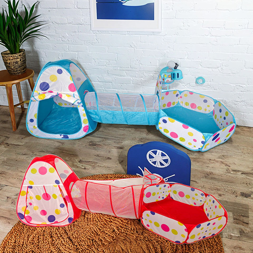 Tente de jeu pliable pour adultes 100% polyester avec tunnel pour piscine à balles océaniques, toutes saisons, voyage