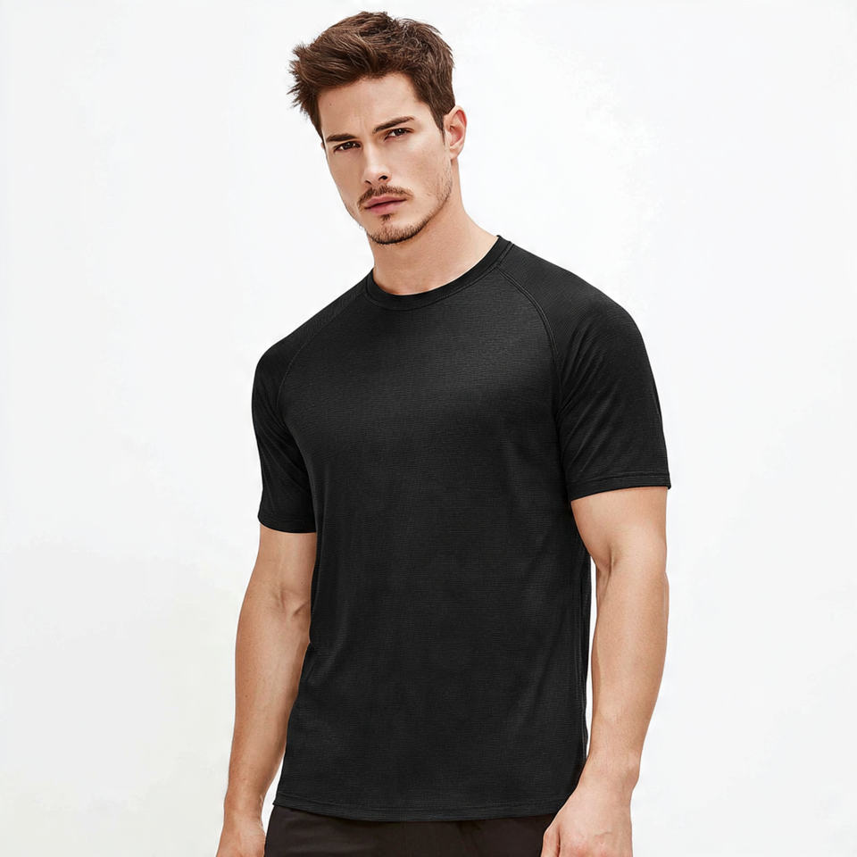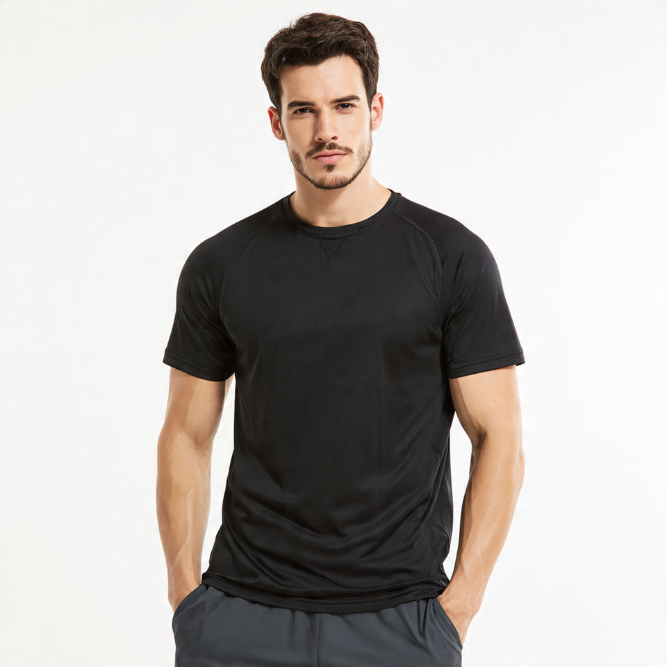 T-shirts de yoga pour hommes en polyester 100 %, coupe ajustée, manches courtes, col rond, respirants, séchage rapide, vêtements de sport et de fitness