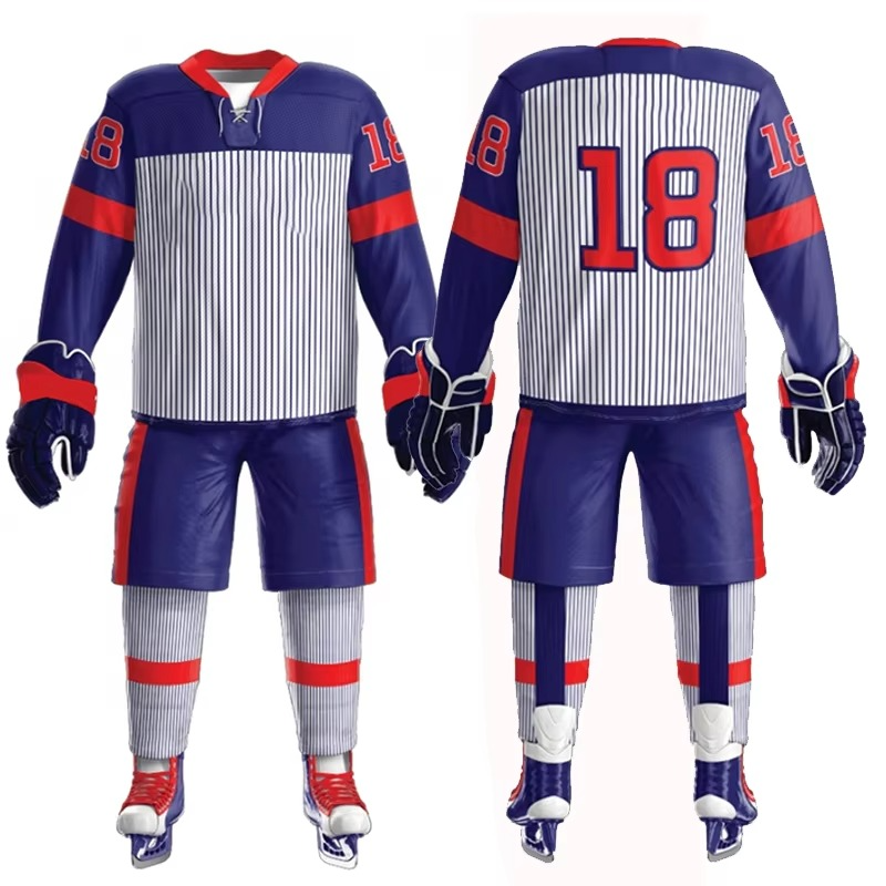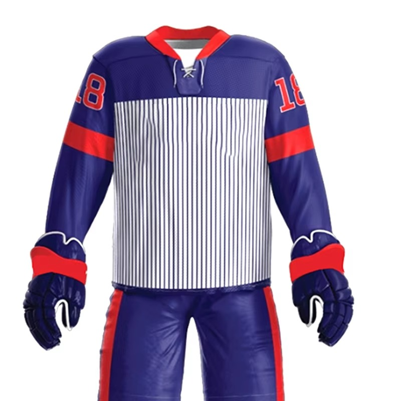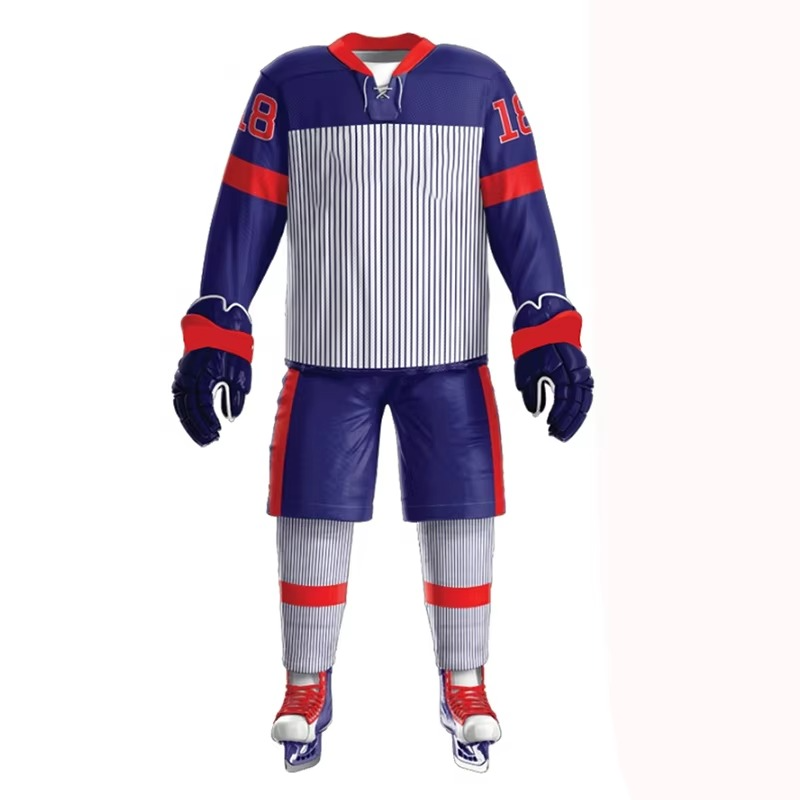 Uniforme de hockey sur glace 100 % polyester respirant grande taille pour adultes – Tailles personnalisables, ensemble de vêtements de sport, fabrication OEM sur mesure