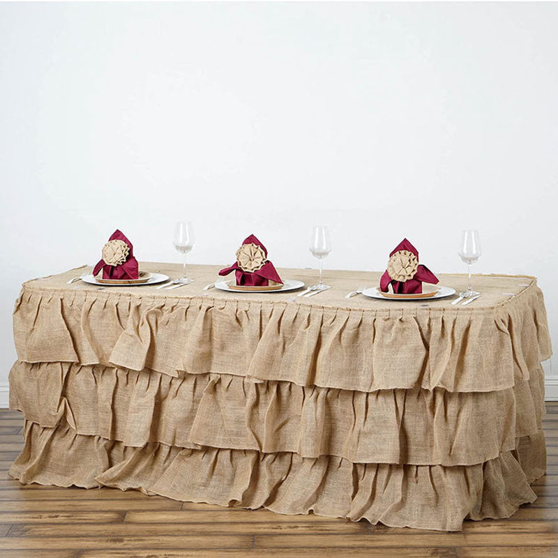 100% Polyester Classique Raphia Naturel Jupe De Table Réutilisable Plage-Thème Décoration De Fête pour Mariages Banquets Hôtels