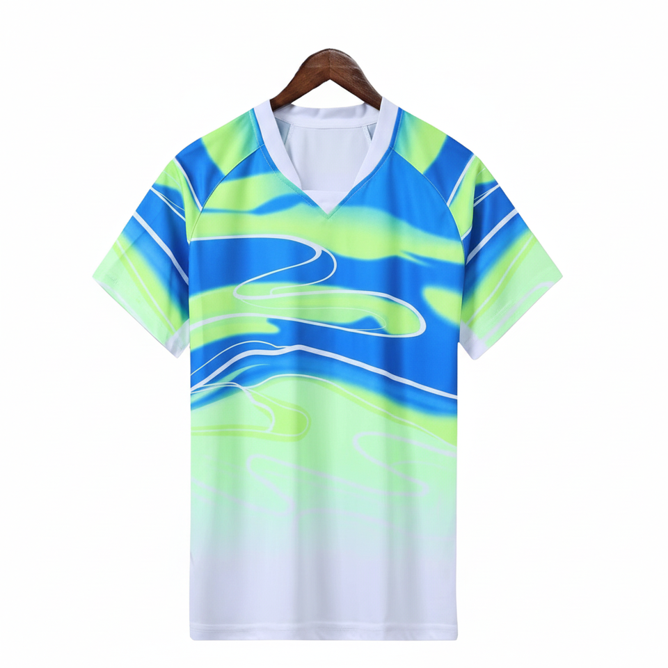 T-shirt personnalisé 100 % polyester par sublimation, respirant, confortable, col en V, manches courtes, couleur unie, haute qualité, lavable, durable
