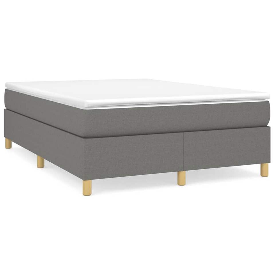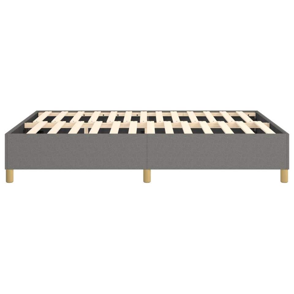 Cadre de lit rembourré gris foncé en tissu 100% polyester, bois d'ingénierie, contreplaqué, sommier, design minimaliste
