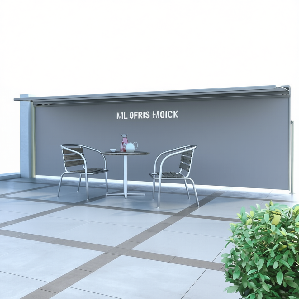 Auvent latéral en acier gris, 100% polyester enduit PU, rétractable, fonctionnement manuel, design moderne, montage mural