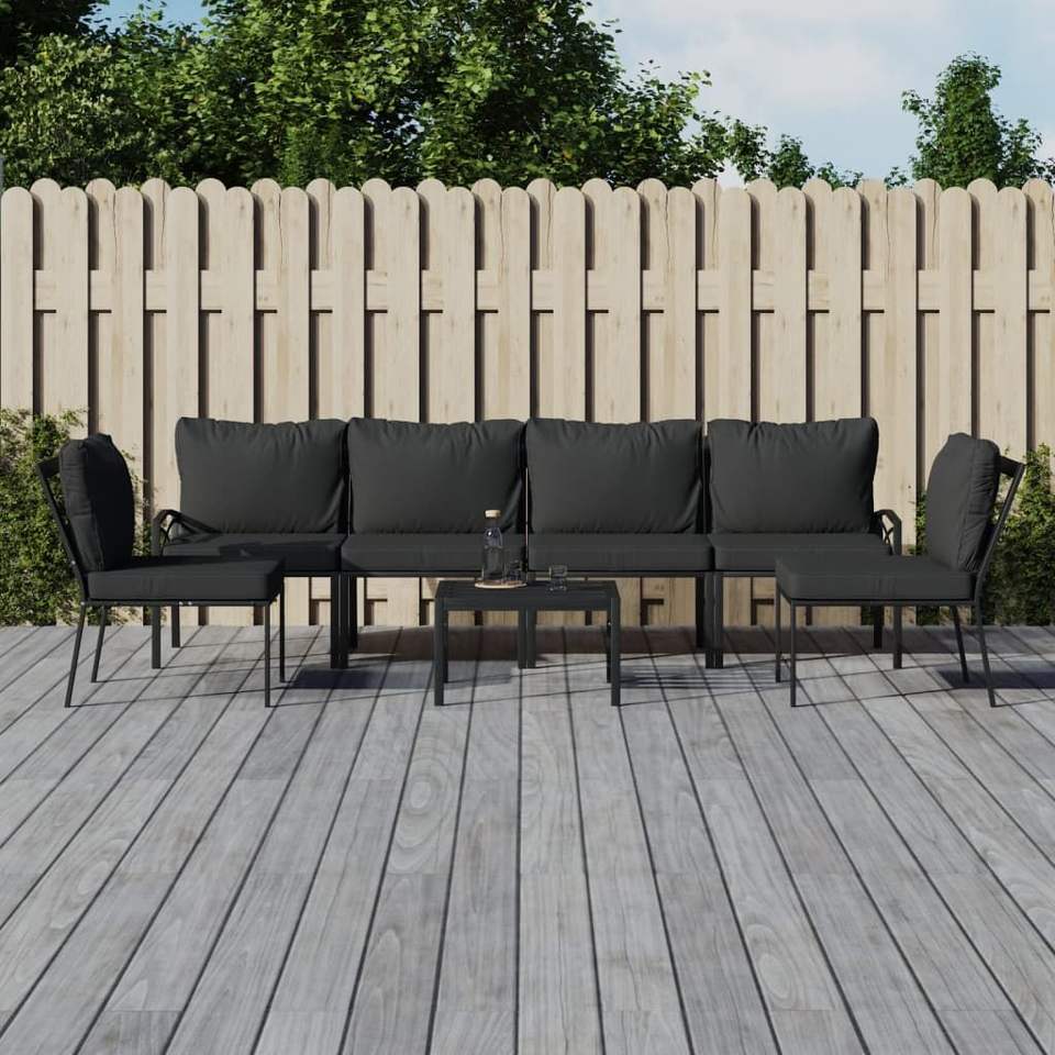 Ensemble de salon de jardin 100% polyester en acier thermolaqué noir et gris