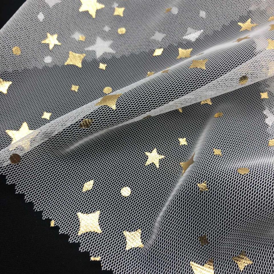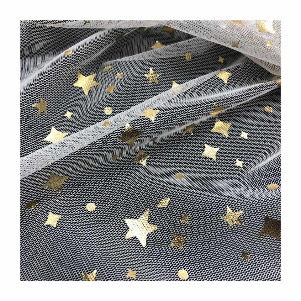 100% Polyester or étoile paillettes ivoire Net Sequin Tulle tricoté pour brillant feuille étoile tulle robe de soirée