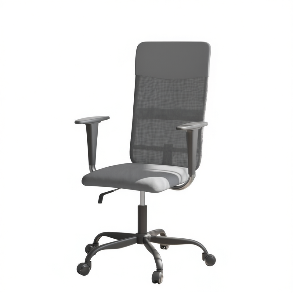 Chaise de bureau en maille grise 100 % polyester, réglage manuel, base pivotante, design contemporain, mobilier commercial