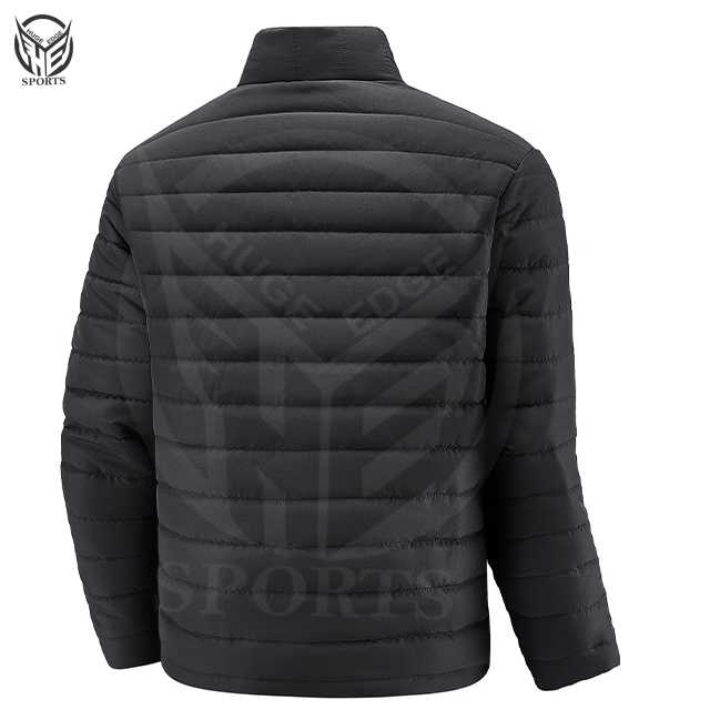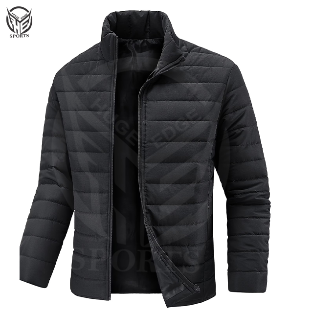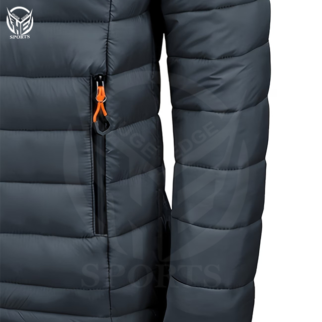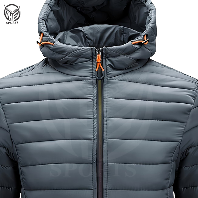 Veste d'hiver rembourrée à capuche 100% polyester, fermeture éclair, tissu brillant à effet bulles, séchage rapide, coupe-vent, respirante, personnalisée pour homme