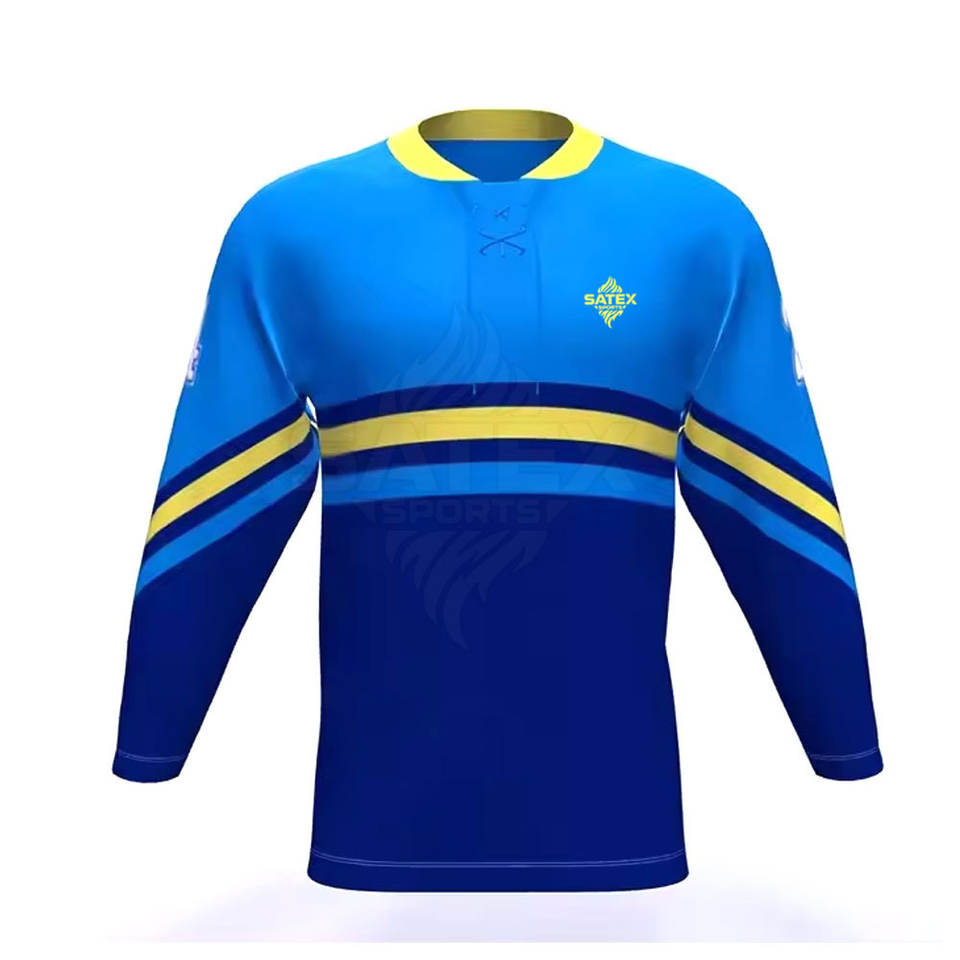 Maillot de hockey sur glace 100% polyester de haute qualité pour hommes adultes, séchage rapide et respirant, couleur personnalisée et nom d'équipe, service OEM