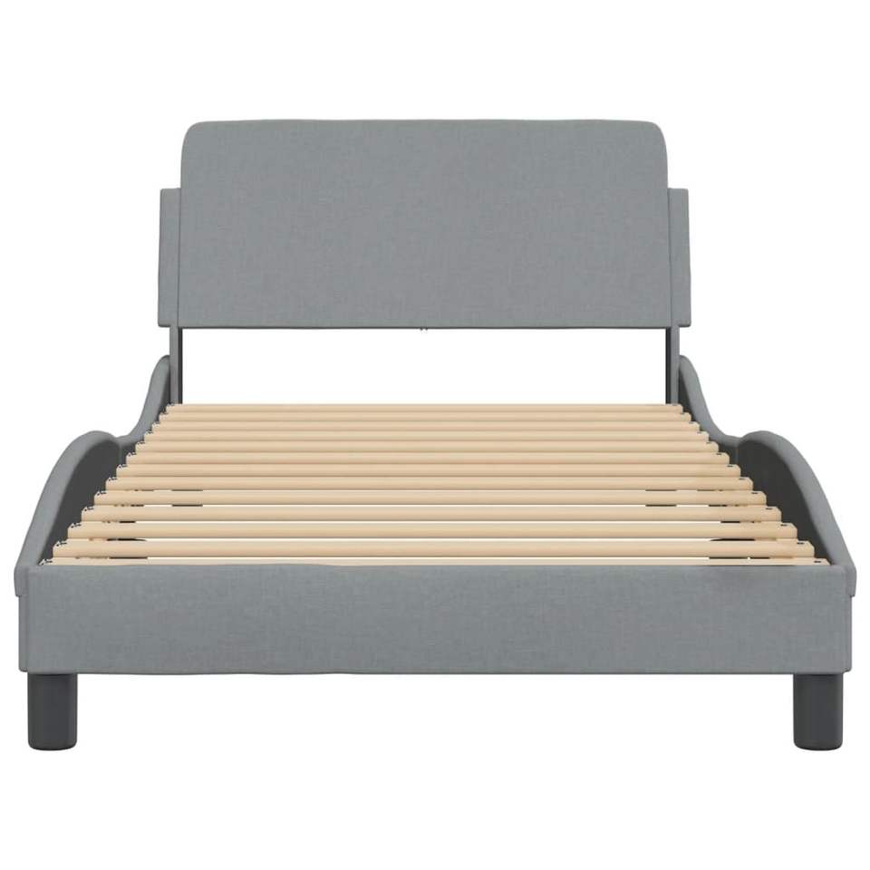 Cadre de lit gris clair 100% polyester, bois d'ingénierie avec métal et contreplaqué, lits métalliques durables
